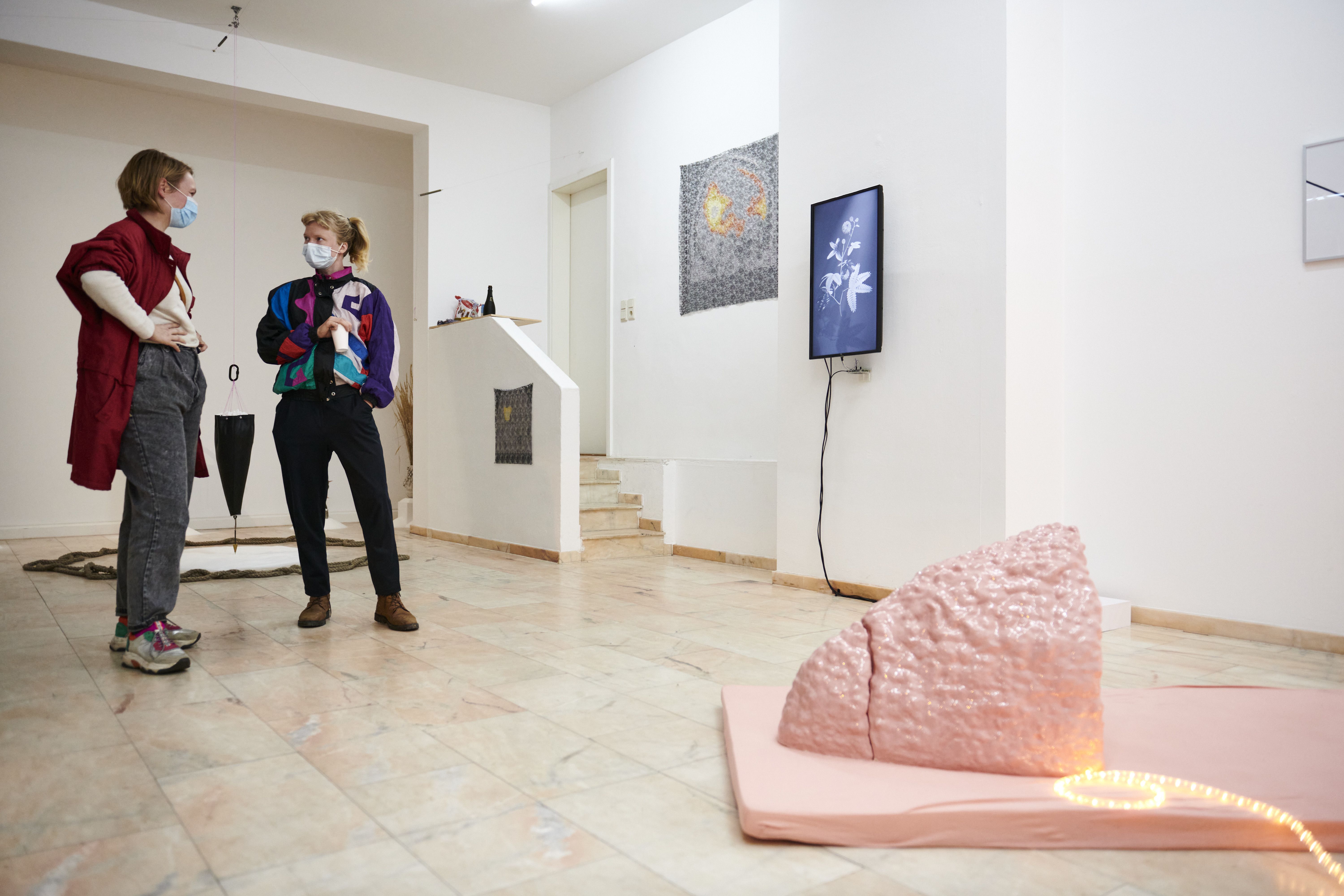 In einer Performance sitzen Menschen im Kreis und besticken die jeweiligen Drucke entsprechend der abgebildeten Farben. Während der gemeinsamen Stickarbeit, den rhythmischen, monotonen Bewegungen, fallen die anwesenden Gehirne immer wieder in verschiedene Zustände, schwingen sich in der Entspannung ein und besticken ein mögliches Abbild.